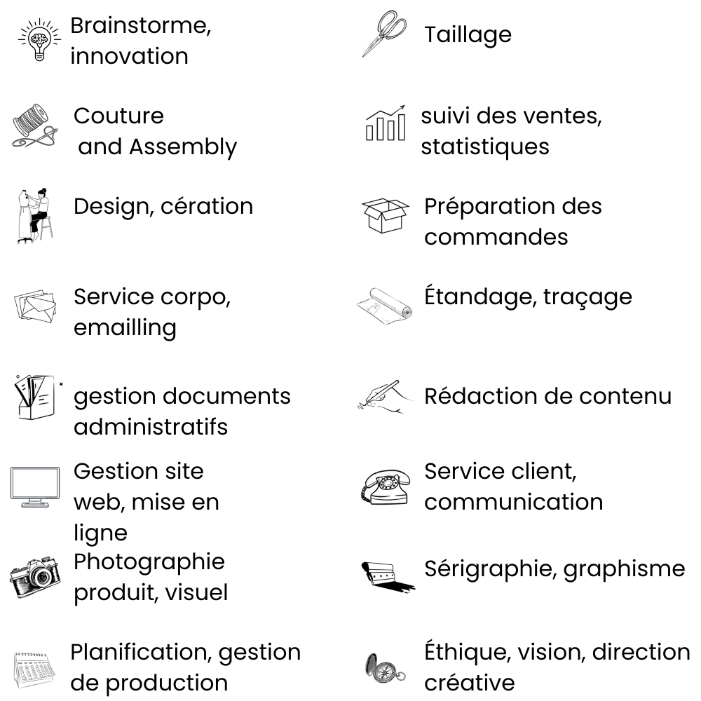Notre force, c’est notre polyvalence. Chaque membre de l’équipe touche à plusieurs étapes de la création, selon ses talents, ses disponibilités et son cœur du moment.