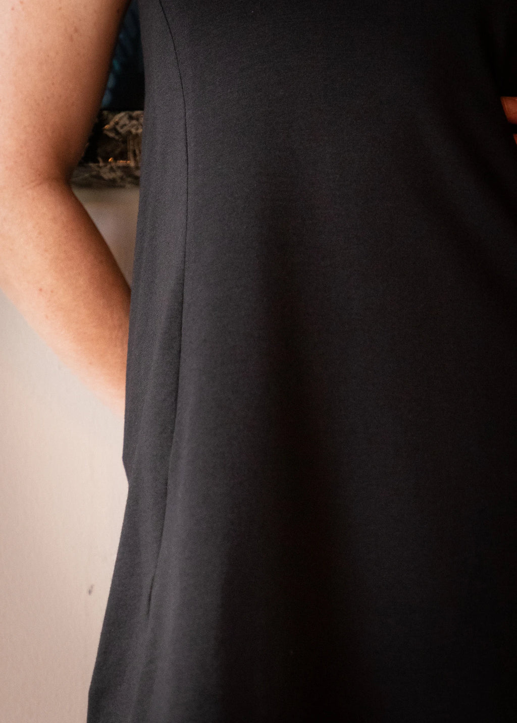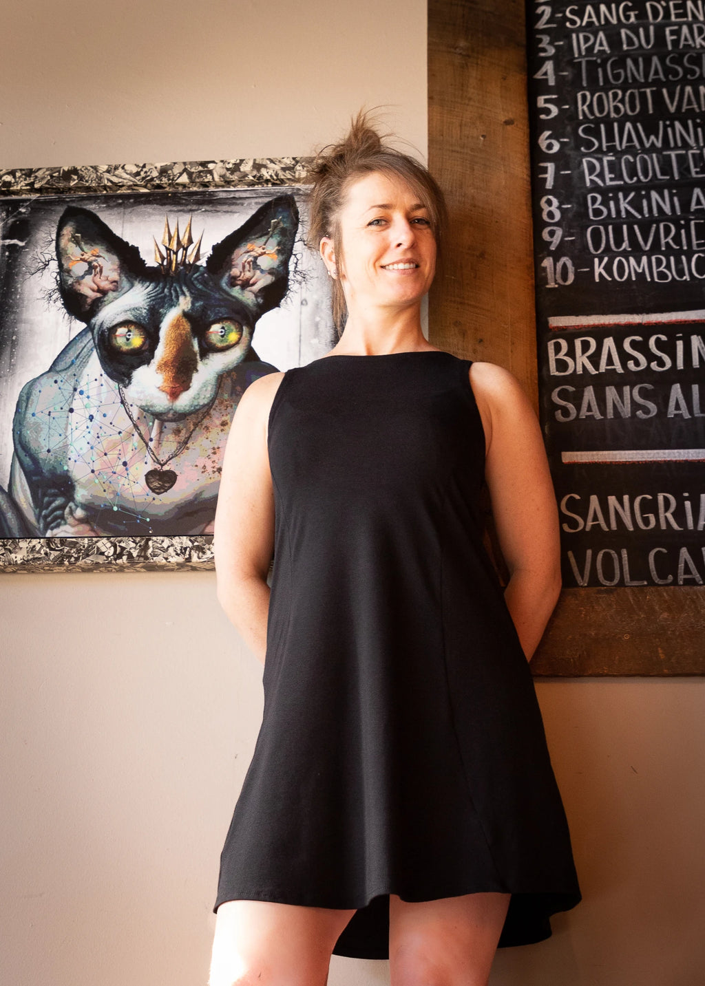 Robe courte Abaka pour femme, en bambou. Haut ajusté, coupe ample (ligne A). Faite au Québec de manière éco-responsable, vêtement mode éthique.